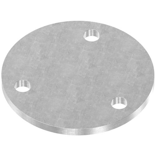 Ankerplaat staal rond met een diameter van 100 mm en een dikte van 10 mm, vervaardigd uit constructiestaal S235JR met een onbewerkt oppervlak. Deze schijf is voorzien van 3 montagegaten met een diameter van 13 mm. De steekmaat tussen de montage gaten is 75 mm. Deze ankerplaat uit staal wordt toegepast voor het verankeren van balusters of staanders in hekwerken en balustrades maar kan uiteraard voor de meest uiteenlopende toepassingen worden gebruikt.