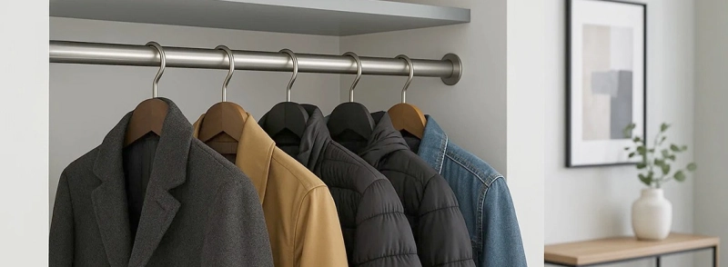 Gewicht van de kleding: Zware jassen belasten de stang meer dan lichte kledingstukken.