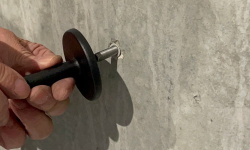Je draait de twee moeren op het metrische deel van de schroef en draait ze tegen elkaar vast. Vervolgens kun je de bovenste moer gebruiken als een soort kop om de stokschroef in te draaien. Voor het uitdraaien van de stokschroef gebruik je dan de onderste moer. Daarna verwijder je de beide moertjes, waardoor alleen nog de metrische draad uitsteekt: klaar voor montage van een trapleuning of constructiedeel.