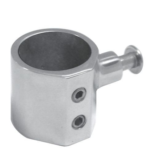 RVS buismiddenstuk met zijaansluiting, geschikt voor buis met een diameter van 25 mm. Dit tussenstuk is vervaardigd van RVS316 met een hoogglans gepolijst oppervlak en wordt over de buis geschoven en gefixeerd door middel van twee inbusboutjes aan de zijkant. Dit buisstuk is aan de zijkant voorzien van een aansluitpunt met schroef voor het monteren van een buiseindstuk of eindkap met oog.
