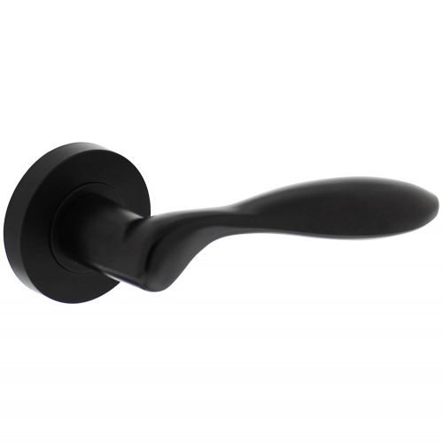 Mat zwarte deurkruk van het merk Intersteel, model George, voor montage aan één zijde van een deur. Deze deurkruk wordt geleverd als paar voor montage aan beide zijden van de deur. De kruk zit op een rond rozet met een diameter van 52 mm en een dikte van 10 mm. Het rozet is geveerd, waardoor de deurklink na gebruik weer netjes terugveert naar zijn originele horizontale positie. Deze ronde deurkruk wordt door middel van een schroefverbinding op de deur bevestigd. Dit gatdeel wordt geleverd inclusief bevestigingsmaterialen en exclusief deurkrukstift.