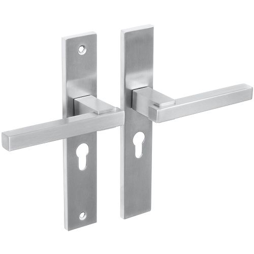 Deurklink Karina op rechthoekig schild, Profielcilindergat 55 mm, RVS - Technische informatie