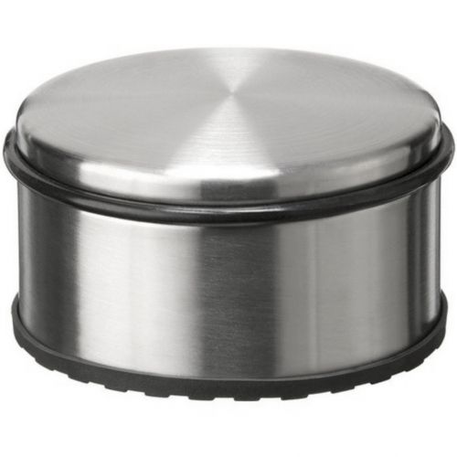 Vrijstaande RVS deurstopper van zware kwaliteit. De deurstop is gemaakt van RVS 304 en heeft een mat geborsteld oppervlak. De deurstopper heeft een diameter van 11 cm en een hoogte van 6 cm. De deurstop hoeft niet geschroefd te worden en kan hierdoor makkelijk verplaatst worden. Simpelweg plaatsten en klaar. Deze deurstopper heeft een gewicht van 1,2 kg staat op een dikke rubbere anti-slip ondergrond. Om te voorkomen dat deuren, meubels en wanden beschadigen is de deurstopper voorzien van een dikke rubber ring. Deze deurstop is alleen geschikt voor gebruik binnenshuis, niet voor buitengebruik.