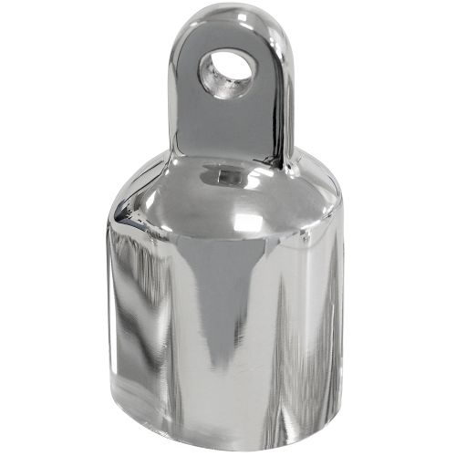 RVS versterkte eindkap met oog, geschikt voor buis met een diameter van 22 mm. De buis wordt in de eindkap geklemd door middel van 2 inbus stelschroefjes in een versterkt deel van de kap. Deze eindkap is vervaardigd van RVS316 met een hoogglans gepolijst oppervlak. De eindkap is voorzien van een lip van 7 mm dik en is voorzien van een gat met diameter 6,6 mm.