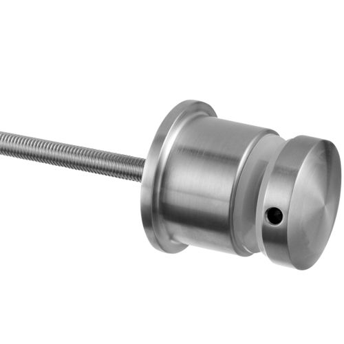 RVS glasadapter, speciaal geschikt voor het monteren van een Frans balkon, gemaakt van RVS316 met een mat geborsteld oppervlak. Deze heeft een diameter van 50 mm en een lengte van 38 mm. De muurzijde van de adapter is voorzien van een extra grote afdekschijf met een diameter van 60 mm. Deze adapter wordt geleverd met een extra lange M10 draadstift. Deze adapter wordt gemonteerd in chemisch anker en de montageschijf wordt aangedraaid met een speciale haaksleutel.