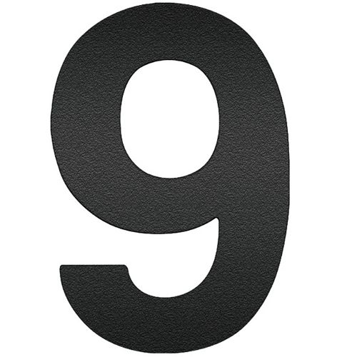 Mat zwart huisnummer 9 met een hoogte van 120 mm. Dit modern vormgegeven huisnummer is vervaardigd van RVS304 met een mat zwarte fijnstructuur coating (RAL 9005). Deze is voorzien van afstandsbussen voor een blinde montage tegen de muur. Hiervoor dienen er 2 gaten met een diameter van 8 mm in de muur geboord te worden. Dit huisnummer wordt geleverd inclusief bevestigingsmaterialen.
