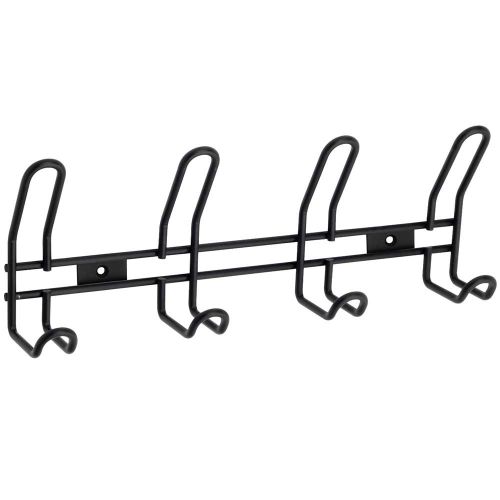 Kapstok zwart, voorzien van 4 haken. Dankzij de lange ophangpunten kun je aan elke haak zowel boven als beneden items ophangen, zoals jassen, sjaals, hoeden en andere accessoires. Dit maakt de wandkapstok ideaal voor gezinnen of iedereen die zijn garderobe zo efficiënt mogelijk wil gebruiken. Met een breedte van 375 mm en lengte van 135 mm past de kapstok in diverse ruimtes zonder te overheersen. De wandkapstok is eenvoudig te monteren met de meegeleverde schroeven.