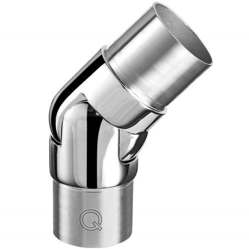 Traploos verstelbare RVS knie voor het verbinden van buis met een diameter van 42,4 x 2,0 mm in een hoek van 0 tot 70 graden. Deze knie is vervaardigd van RVS316 met een hoogglans gepolijst oppervlak. Een verstelbare knie is ideaal voor gebruik op plaatsen waar de exacte hoek niet helemaal bekend is en wordt vaak toegepast in trapleuningen, hekwerken en balustrades. De hoek van de knie is traploos verstelbaar. De knie wordt aan beide zijden met RVS lijm in de buis gemonteerd.
