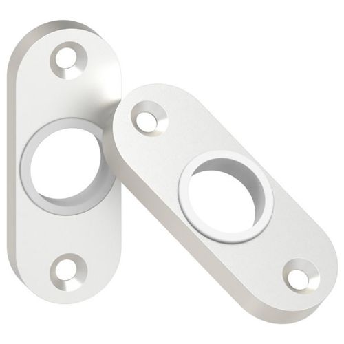 Aluminium deurkruk rozet, ovale uitvoering met een mat grijs oppervlak. Het rozet is 65 mm lang, 25 mm breed en is 8 mm dik. Het schild is voorzien van een gat voor een deurkruk. Dit sleutel rozet is ovaal en voorzien van 2 schroefgaten voor een verzonken M5 schroef. De twee schroefgaten hebben een h.o.h. afstand van 50 mm. Deze sleutelrozetten worden geleverd per paar van 2 stuks inclusief bevestigingsmaterialen en witte kunststof geleidering.
