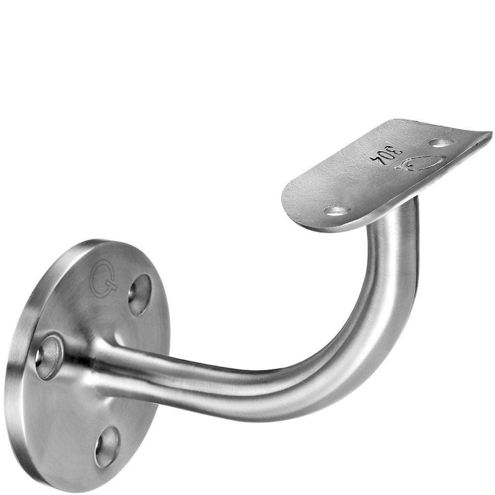 RVS trapleuning houder voor blinde montage tegen de muur, geschikt voor ronde trapleuningen met een diameter van 42,4 mm. Deze leuning houder is gemaakt van RVS316 met een hoogglans gepolijst oppervlak. De afstand van de muur tot het hart van de leuning is 74 mm.