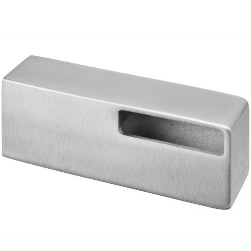 RVS leuningdrager voor blinde montage van een rechthoekige trapleuning van 40 x 10 mm, gemaakt van RVS304 met een mat geborsteld oppervlak. Dit is een geweldig strak en minimalistisch model waarbij de leuning in de leuningdrager wordt vastgeklemd. Er hoeven voor deze strakke leuningdrager geen schroeven in de leuning te worden geboord en getapt.