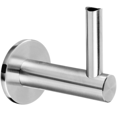 RVS trapleuning houder voor blinde montage tegen de muur. Door het omdraaien van de aansluitbus is deze leuning houder geschikt voor montage tegen zowel ronde buis met een diameter van 42,4 mm als vlakke kokerprofielen: het ene uiteinde van de aansluitbus is namelijk afgerond voor buis 42,4 mm en de andere zijde is vlak. Dit model leuningdrager is een echte bestseller vanwege zijn strakke, unieke design. Deze is gemaakt van RVS304 met een mat geborsteld oppervlak. De afstand van de muur tot het hart van de leuning is 75 mm.