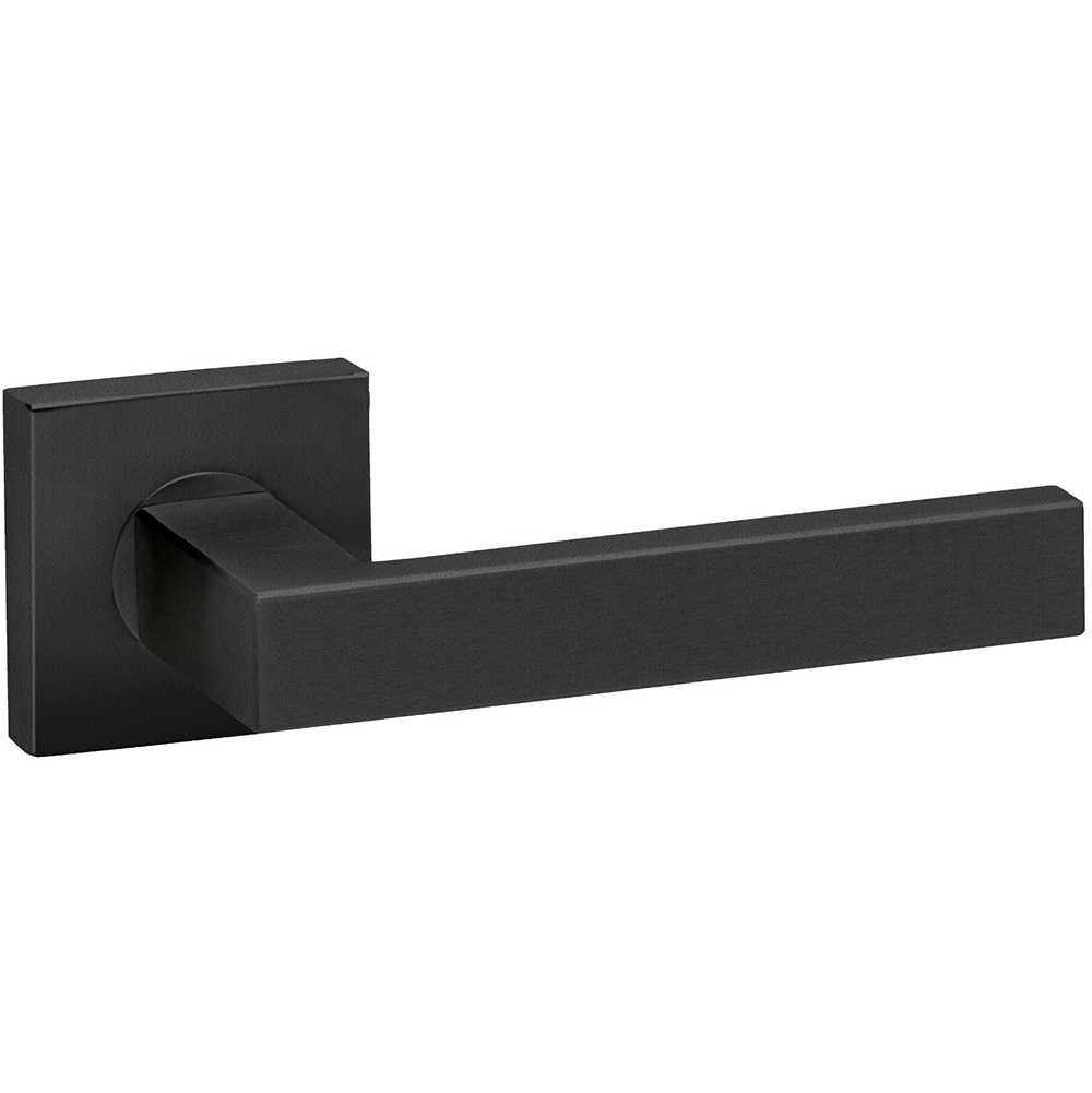 Zwarte deurkrukken op rozet in rond en vierkant