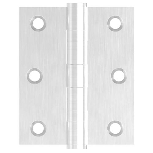 Kogellagerscharnier van 89 x 76 mm met vaste stift en rechte hoeken, vervaardigd van RVS304 met een mat geborsteld oppervlak. Dit scharnier heeft een plaatdikte van 2,5 mm en een knoop met een diameter van 12,6 mm. Dit scharnier is voorzien van kogellagers en is geschikt voor zowel links- als rechtsdraaiende deuren. Het kogellagerscharnier wordt geleverd exclusief bevestigingsmaterialen.
