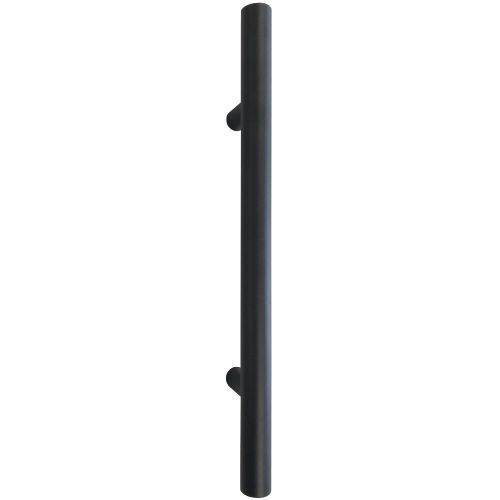 Ronde mat zwarte deurgreep in T-model, leverbaar met een buisdiameter van 27 mm, 34 mm en 42 mm en in een lengte van maximaal 2500 mm. De deurgreep wordt onder een hoek van 90 graden op de deur gemonteerd. Deze is vervaardigd van RVS304 met een mat zwarte fijnstructuur coating.