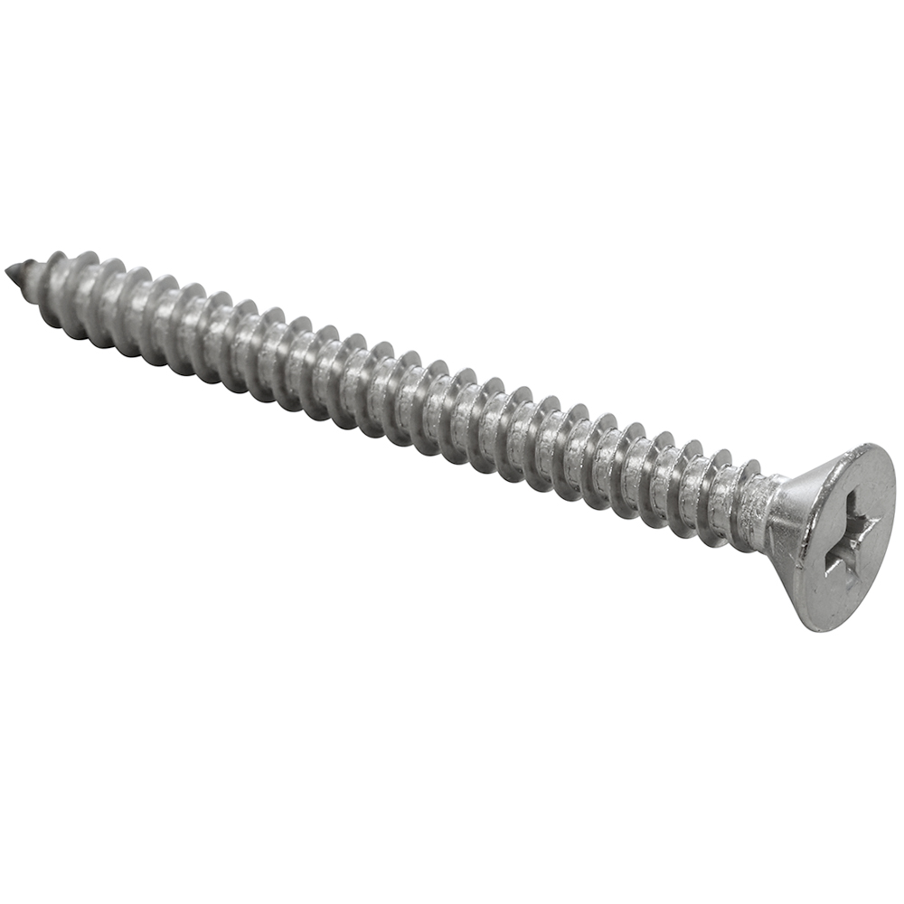 RVS plaatschroef 4,8 x 50 mm in RVS316 (A4). Voorzien van een verzonken kruiskop. Ideaal voor de montage van voor het monteren van buishouders, steuntjes en oogplaten waarbij de schroeven zichtbaar blijven. Met behulp van een Philips nr. 2 schroevendraaier wordt de schroef gemakkelijk gemonteerd. Deze schroeven kunnen zo in hout of polyester geschroefd worden.