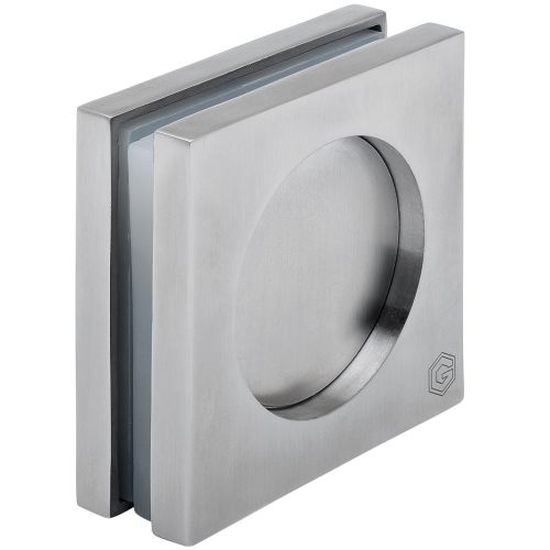 Vierkante RVS schuifdeurkommen van 65 x 65 mm, vervaardigd van RVS304 met een mat geborsteld oppervlak. De schuifdeurkommen zijn geschikt voor montage op glazen schuifdeuren binnenshuis met een dikte van 8 tot 12 mm. Voor de montage dient er een gat in het glas te worden geboord met een diameter van 56 mm. De kommen worden geleverd als paar voor dubbelzijdige montage. De twee helften worden tegen elkaar bevestigd door middel van een schroefverbinding.