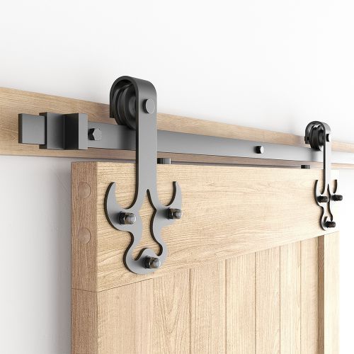 Schuifdeur systeem zwart met een klassiek design, deze past mooi bij vrijwel iedere schuifdeur in wand, voor een barndoor of voor bijvoorbeeld kast schuifdeuren. Het zwart schuifdeursysteem is vervaardigd van staal met een mat zwarte coating. Dit rail schuifdeur systeem wordt tegen de muur of wand gemonteerd en aan de voorkant van de deur. Het maximale gewicht van de schuifdeur is 150kg en het schuifdeursysteem is geschikt voor een deurdikte van maximaal 40 mm. Voor de montage van de rails voor schuifdeur en het schuifdeur wiel is er een minimale vrije ruimte van 13 cm vereist. De bevestigingsmaterialen en montage instructie worden meegeleverd.