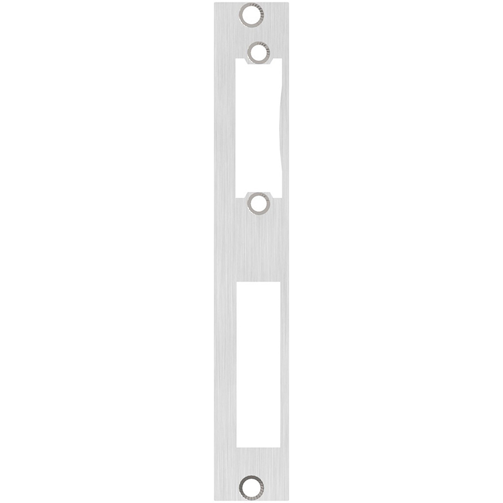 RVS sluitplaat, geschikt voor een schuifdeurslot en haakslot met een slotafstand van 72 mm, vervaardigd van RVS304 met een mat geborsteld oppervlak. De sluitplaat is 3 mm dik. De plaat is voorzien van schroefgaten met een diameter van 5,5 mm en wordt geleverd exclusief bevestigingsmaterialen.