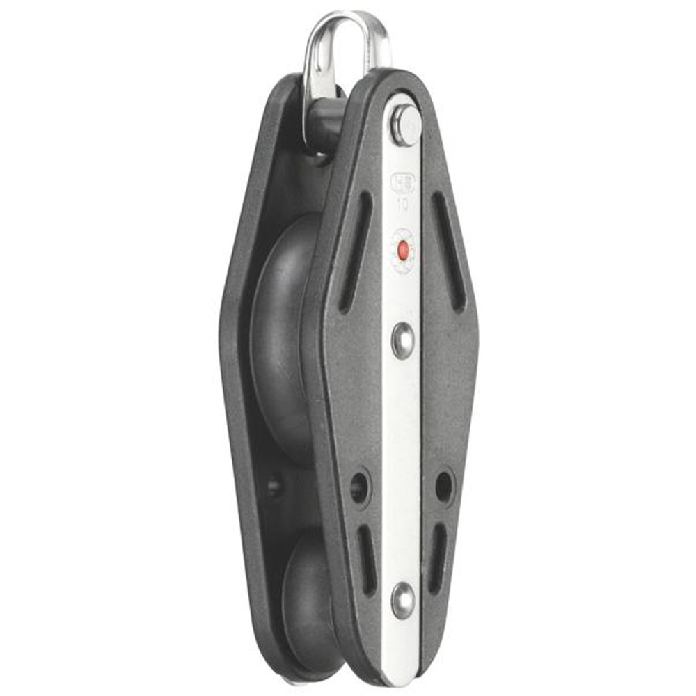 RVS vioolblok katrol, voorzien van een kogellager, warteloog en hondsvot. Dit katrol is gemaakt uit RVS 304 met kunststof en is geschikt voor touw met een diameter tot 10 mm. Dit vioolblok verdeelt de kracht gelijkmatiger dan een standaard katrol en maakt het mogelijk om zware lasten met precisie te bewegen. De kogellager vermindert wrijving voor soepele rotatie. Het warteloog dient als een draaibare bevestiging die ervoor zorgt dat de katrol vrij kan draaien zonder dat het touw of de lijn in de knoop raakt of verdraait. De hondsvot dient als een ankerpunt of doorvoer, wat helpt bij het geleiden, vergrendelen of omleiden van het touw.