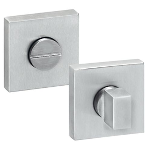 Vierkante RVS WC-sluiting, vervaardigd van RVS304 met een mat geborsteld oppervlak. Deze WC-sluiting is geschikt voor toilet- en badkamerdeuren. De rozetten hebben afmetingen van 50 x 50 mm en zijn 11 mm dik. Daarnaast zijn deze voorzien van een kunststof onderconstructie met nokken van 7 mm, die zorgen voor een stevige montage tegen de deur. Deze badkamer-/toiletsluiting wordt geleverd inclusief bevestigingsmaterialen en een wisselstift van 8 x 8 mm.