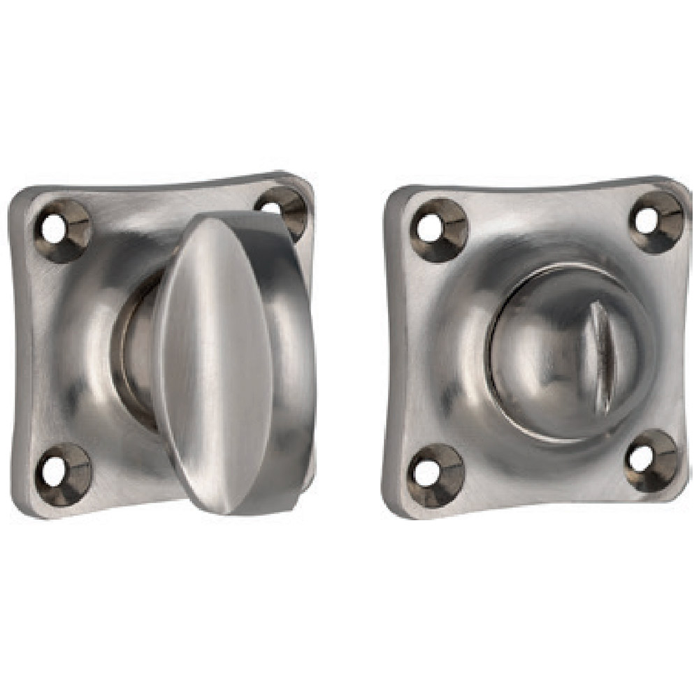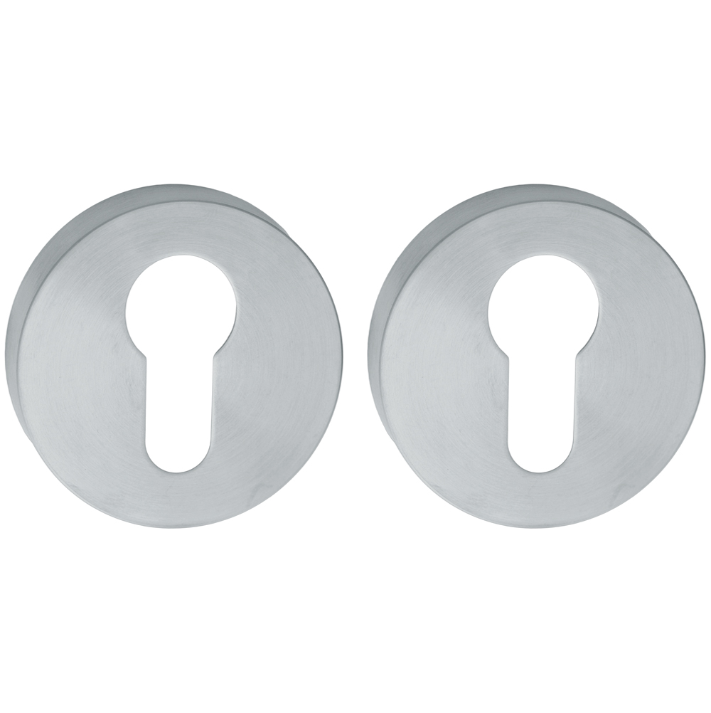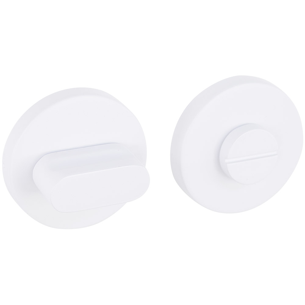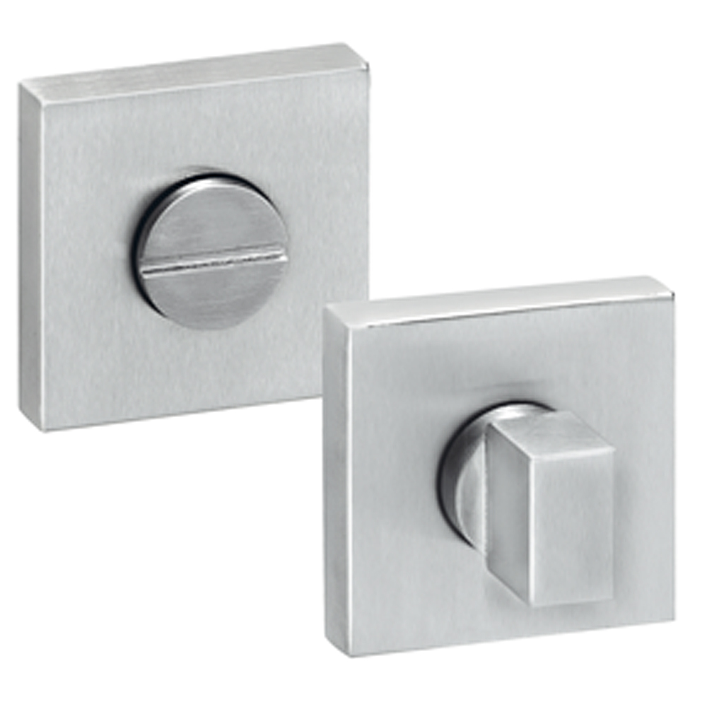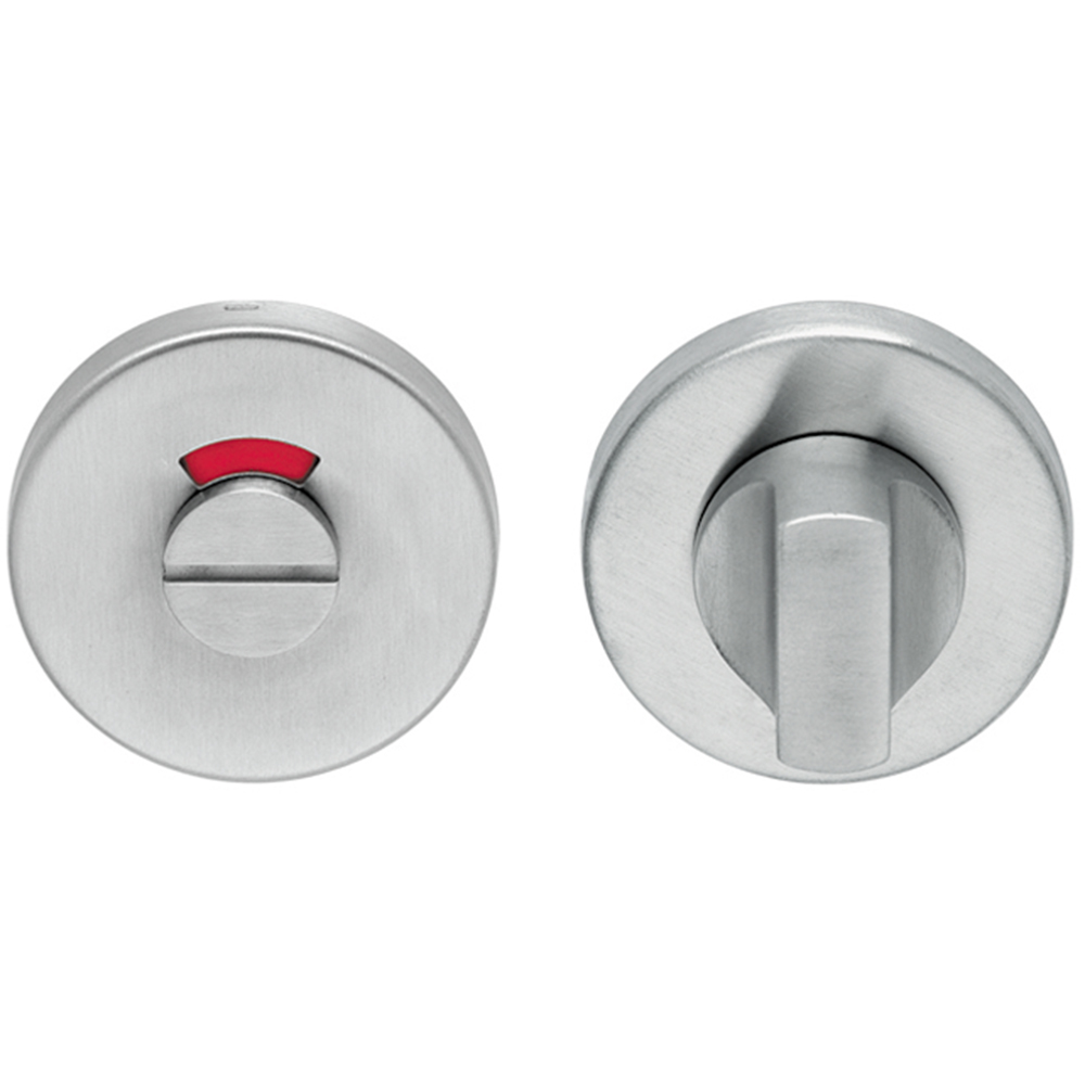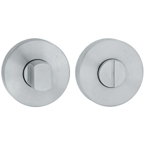 Ronde RVS WC-sluiting, vervaardigd van RVS304 met een mat geborsteld oppervlak. Dit is een SE (Sharp Edge) uitvoering, dat wil zeggen dat de rozetten een scherp gevouwen rand hebben voor een strakke en moderne look. Deze WC-sluiting is geschikt voor toilet- en badkamerdeuren. De rozetten hebben een diameter van 52 mm en zijn 11 mm dik. Daarnaast zijn deze voorzien van een kunststof onderconstructie met nokken van 7 mm, die zorgen voor een stevige montage tegen de deur. Deze badkamer-/toiletsluiting wordt geleverd inclusief bevestigingsmaterialen en een wisselstift van 8 x 8 mm.