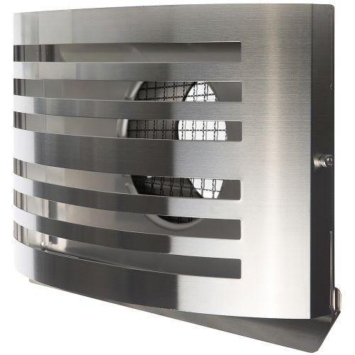 RVS ventilatierooster ALFA met een halfbolle en mat geborstelde RVS frontkap, geschikt voor ronde ventilatiekanalen. Dit RVS rooster heeft een bijzonder en strak design en is hierdoor een echte eyecatcher op een muur of gevel. Het rooster bestaat uit een montagedeel en een frontkap. Het montagedeel is voorzien van een druiprand, waardoor regen op een afsland van een paar centimeter van de muur of gevel naar beneden valt. Dit design ventilatie rooster is voorzien van grofmazig vliegengaas. Hierdoor is dit rooster geschikt voor het afvoeren of toevoeren van lucht in combinatie met mechanische ventilatie of natuurlijke ventilatie en voor WTW installaties. Het ventilatierooster wordt geleverd in een luxe verpakking inclusief bevestigingsmaterialen.