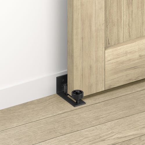 Universele verstelbare deurgeleider met wandbevestiging voor het geleiden van een schuifdeur tot een dikte van 89 mm. Deze schuifdeur geleiders zijn de ideale oplossing wanneer je niet in vloer wil boren omdat er bijvoorbeeld vloerverwarming ligt. De schuifdeurgeleider wordt geleverd met een meerdere rollers, waardoor er voor iedere dikte schuifdeur tot 89 mm een passende oplossing is. Voor deze deurgeleider hoeft er geen sleuf aan de onderkant van de schuifdeur gemaakt te worden. De schuifdeur geleider wordt geleverd inclusief bevestigingsmaterialen.