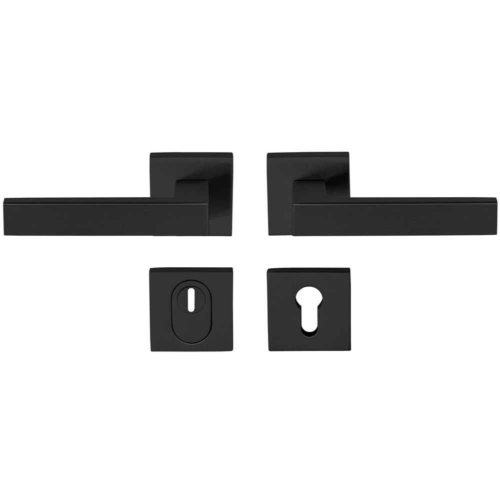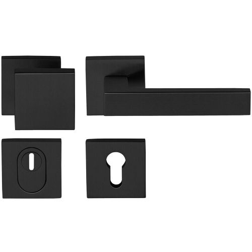 Voordeurbeslag set zwart vierkant Quattro - Inhoud