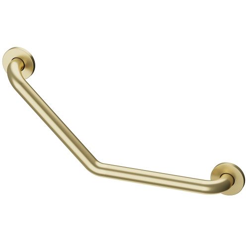 Wandbeugel goud geborsteld uit de Kosmos lijn van het merk Haceka. Deze douche handgreep is voorzien van een hoek van 135 graden. Wandbeugels zijn speciaal geschikt voor montage op een badkamer, maar kunnen natuurlijk ook extra ondersteuning bieden in andere ruimtes. Doordat een handgreep voor de douche steun geeft bij het zitten en opstaan, is deze bijzonder geschikt voor ouderen en mindervaliden. Met een diameter van 32 mm en een h.o.h. lengte van 554 mm zorgt de handgreep voor voldoende houvast. Je kunt hem in verschillende richtingen op de muur bevestigen en hij kan een belasting tot 150 kg dragen. Voor de montage dient er in de muur geboord te worden. De bevestigingsschroeven worden meegeleverd. De beugel wordt blind op de muur gemonteerd, dus je ziet na montage geen schroeven meer. Bekijk ook onze andere badkamer accessoires en maak je badkamer of toilet helemaal af.